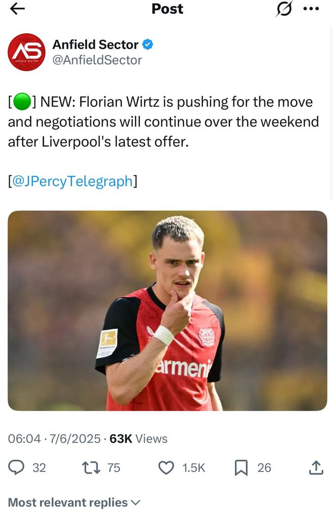 DO:利物浦提交了一份1.34亿欧元(1.13亿英镑)的第三份报价,从勒沃库森签下维尔茨。